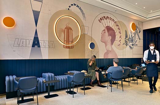 Lavazza hat sich immer dafür engagiert, authentische italienische Kaffeetraditionen zu fördern und gleichzeitig die Zukunft und Innovation im Blick zu haben. Zu diesem Zweck gestaltete Lavazza ein modernes Ladenkonzept mit Beiträgen von renommierten Designern für eine einzigartige Verbraucherreise. Die Bereiche Cafeteria, Lebensmittel und Takeaway im Erdgeschoss zusammen mit der Gastronomie, einem Restaurantbereich in der ersten Etage, bieten ein 360°-Kaffee-Erlebnis.